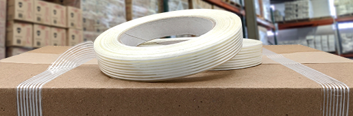 Filament Tape and Strapping Tape typically used to bundle parcels together for shipping. They can also be used to add reinforcement to the bottom of heavy boxes.