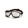 The Pyramex V2G Safety Glasses have a treated lens to prevent fogging and self-seal small scratches with a foam padding. The lens and frame are vented to increase airflow and have interchangeable temples and a headband is included.